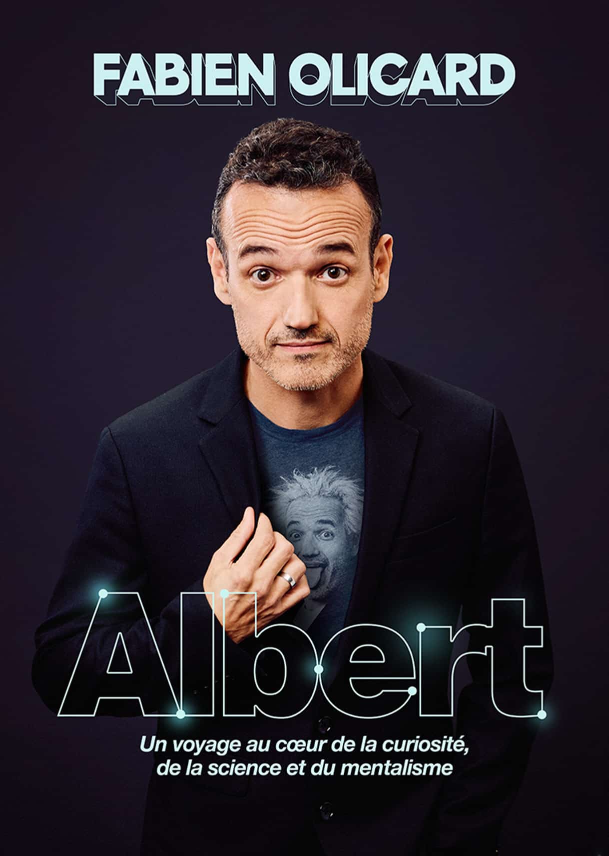 Dans Albert, Fabien Olicard tire le fil de la vie d’Einstein pour explorer ce dont notre cerveau est vraiment capable. Fidèle à son style de stand-up rodé depuis 15 ans, il enchaîne anecdotes stupéfiantes, démonstrations de mentalisme saisissantes et prouesses de mémoire en temps réel ! Le tout porté par un humour spontané et une énergie (très) contagieuse.